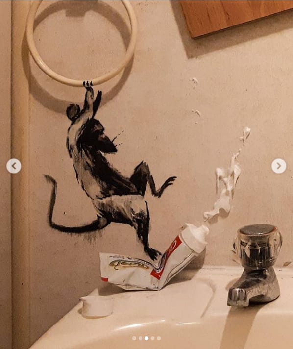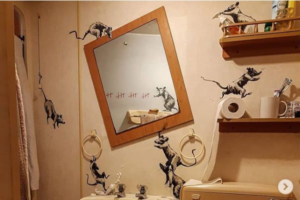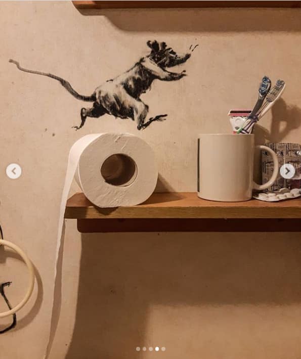 On Wednesday night, Banksy posted five images on his Instagram site, with the caption “My wife hates it when I work from home.”