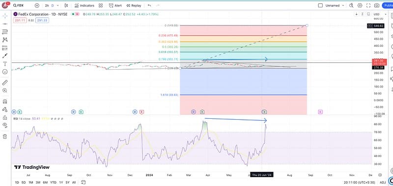 Also, based on the previous swing position, the recent gap-up has formed close to $302, one of the key Fibonacci resistance levels. If the same set of points is followed, the maximum target in the short-to-mid-term for FDX can be as high as $550. However, based on market conditions, multiple corrections can be expected until the price goes that high.