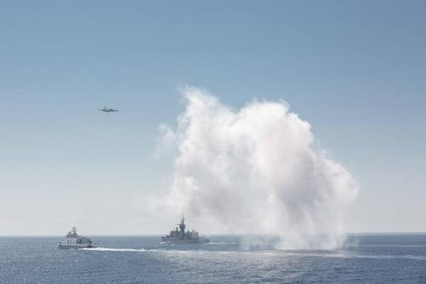 Chinese warplanes have flown close to the median line which divides the Taiwan straight, along with several Chinese warships, a source told Reuters.