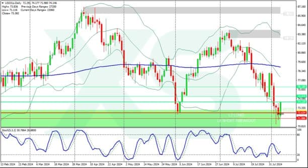 In a bullish scenario, a significant recovery for crude oil prices could be achieved, potentially occurring quickly if the Relative Strength Index (RSI) exits the recent oversold territory. The first resistance level to watch for a potential bounce is the low from July 30 at $74.60. Once that level is breached, the next resistance level to focus on would be $76.30, a pivotal point before testing the 200-day Simple Moving Average (SMA) at $78.25.