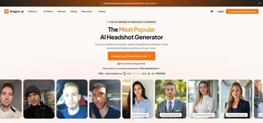 Aragon.AI compliance-ready editorial AI headshots screenshot