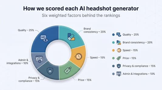 Quality tops the list. If the face does not look like your colleague under realistic lighting, nothing else matters, so true-to-life detail and retouch accuracy weigh in at 25 percent of the total score.
