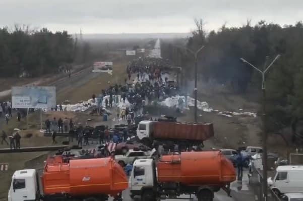 Video footage shared on social media shows that the entrance to the city has been blocked as Russian forces are now close to the area.