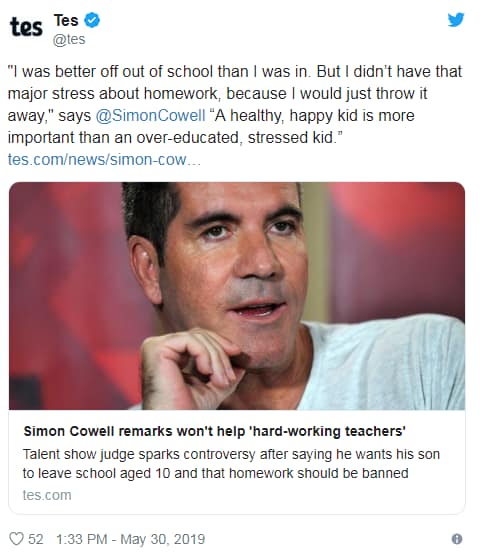 Cowell recently spoke about how his success in music was not helped by his schooling and, controversially, how he would like his son to leave education when he turns 10.