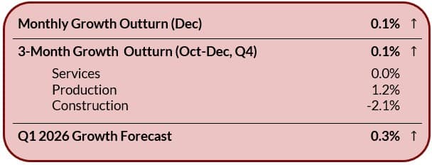 The National Institute of Economic and Social Research (NIESR) expect GDP growth to be 0.3% in the first quarter of 2026, consistent with survey evidence that business activity picked up at the start of the year. We expect services to drive growth this quarter.