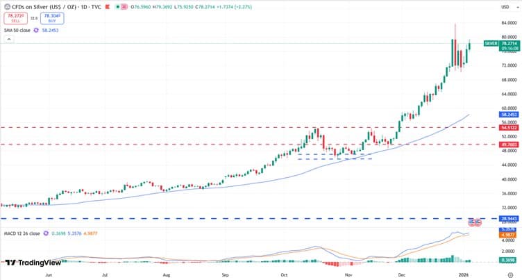 US President Donald Trump’s recent Venezuela action signals a more interventionist foreign policy approach. This geopolitical assertiveness is rumoured to extend beyond Latin America to other strategic regions. Talk of potential action regarding Greenland persists despite strong Danish objections. The US President views the island’s vast mineral reserves as strategically vital, but any move toward Greenland would escalate tensions with European allies. These geopolitical manoeuvres create uncertainty that typically benefits precious metals and gold, and silver are set to thrive in this unpredictable environment.
