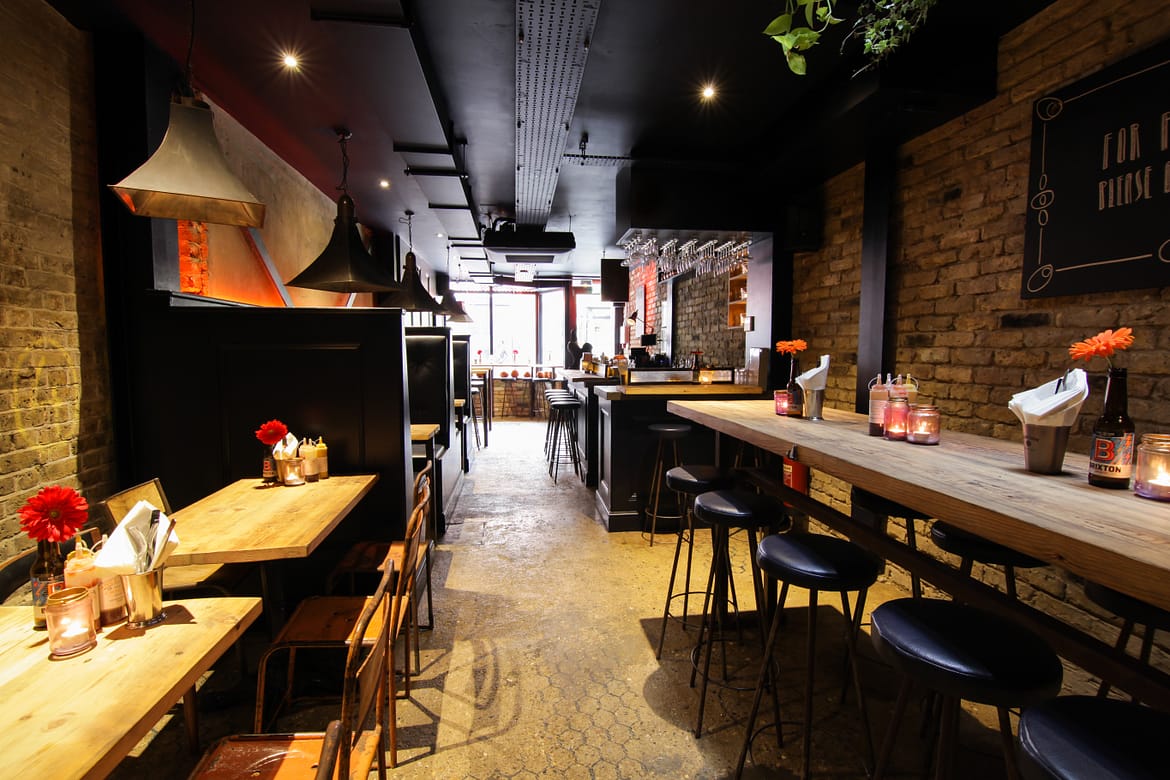 The dining area brings residential warmth, using raw materials such as oak and artfully rusted steel. Hand-crafted orange neon lighting illuminates the building, the venue even features brickwork adorned with graffiti artwork, chicken shaped wall lights also make a statement in this quirky restaurant.
