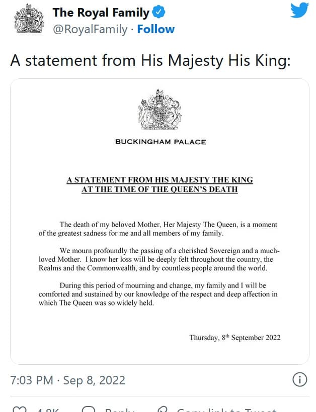 Scotland’s First Minister Nicola Sturgeon said, “The death of Her Majesty, Queen Elizabeth is a profoundly sad moment for the UK, the Commonwealth and the world.