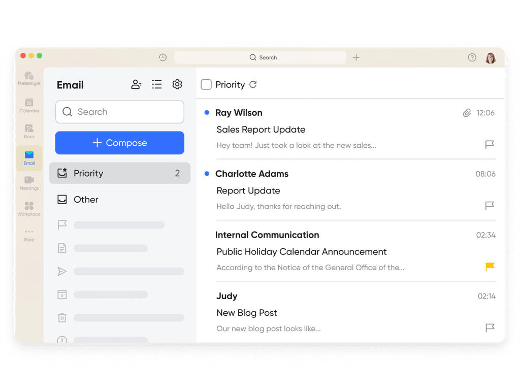 Chat rooms are wonderful for working together quickly, but email is still the best way to talk to individuals outside of the organization and deliver formal updates. Lark Mail keeps people accountable by introducing this channel to the unified workspace. A single inbox that works on all devices helps teams make sure they don’t miss any essential messages. Gmail sync makes it quick to switch computers, and offline access allows you keep working without stopping. You should know that you can attach emails directly to Docs, tasks, or Base records. This makes sure that essential messages don’t get lost. By integrating email in the same workflow context, Lark Mail makes sure that everyone is responsible, not just internal teams. This includes clients, partners, and other people who have a stake in the business.