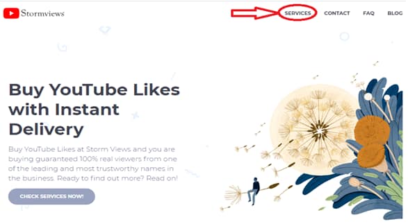 Step 1: On the www.stormviews.net homepage, hover your cursor to the SERVICES tab at the top right corner