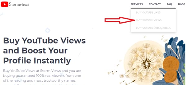 Step 2: Click on the BUY YOUTUBE VIEWS option from the drop-down menu that pops.