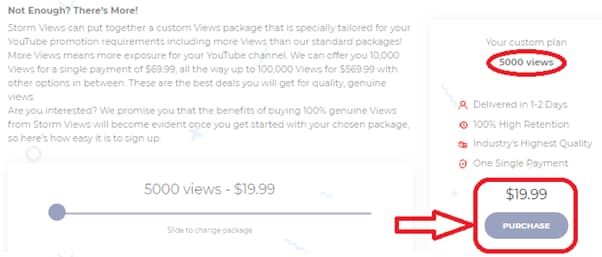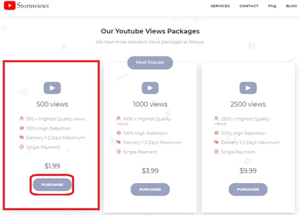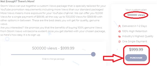 For example: If you want to buy the cheap 500 views for $1.99, click on the purchase tab in that section.