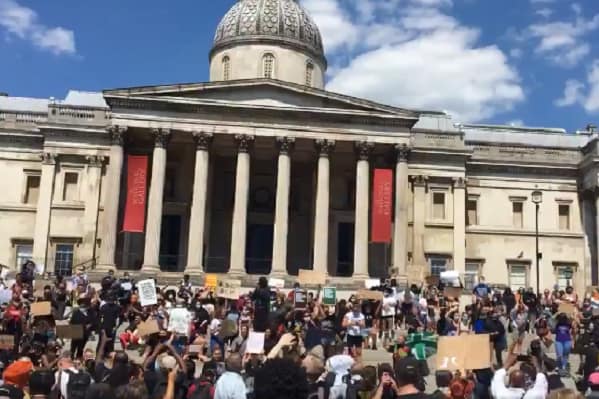 Hundreds of people are protesting at London’s Trafalgar Square over the George Floyd’s death by a US Police Officer last week.