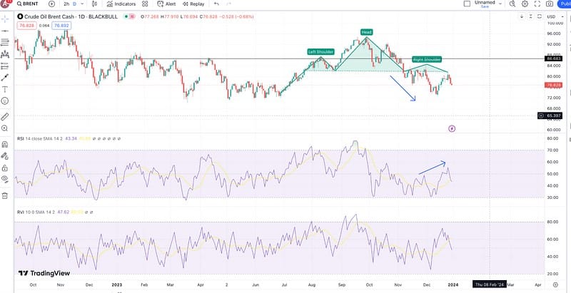 However, if you look at the momentum, courtesy of the Relative Strength Indicator, the bullish divergence is clear. This can push the BRENT prices higher, with the 2024 level expected to find resistance at $86.93.
