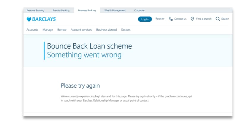 In response to out questions, a Barclays Bank spokeperson told LondonLovesBusiness, โWeโre sorry that some customers are having trouble applying for a Bounce Back Loan on our website and may be receiving an error code.