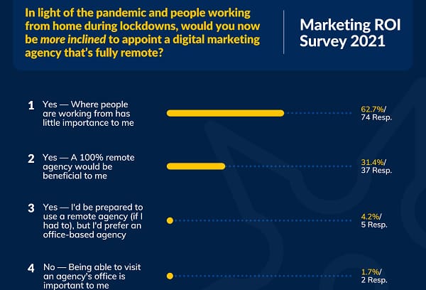 The Exposure Ninja survey also asked business people if they were getting a solid return on their digital marketing investment. The majority (61.9%) said they had a positive return from their digital marketing during the challenging year that was 2020, and 38.1% said their return was negative.