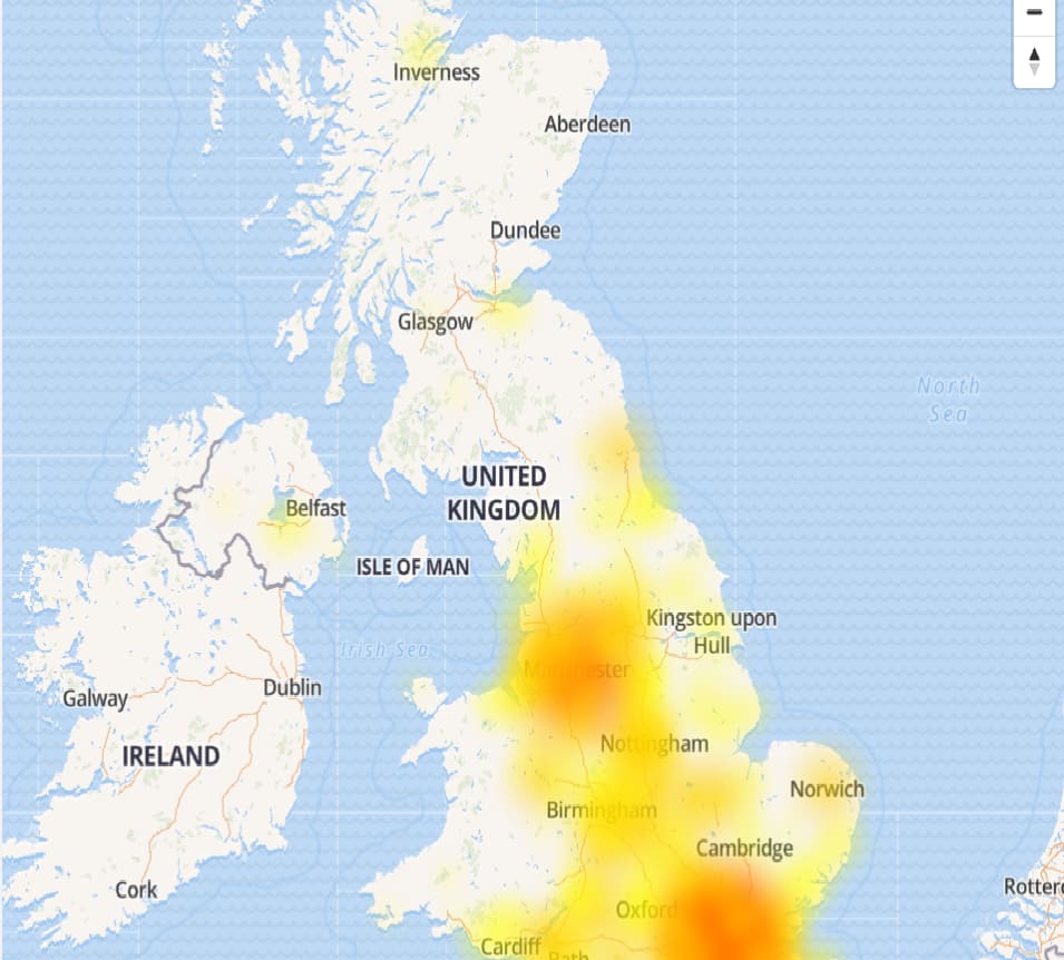 Downdetector map shows the affected areas of the outage along with the time of incidents of services going down.