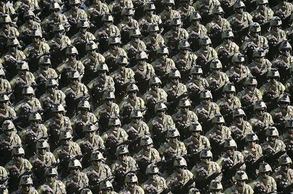 North Korea has one of the largest armies in the world who have more than 1.8 million soldiers almost 1,000 fighter jets, 83 submarines, over 6,000 tanks ballistic missiles and are now believed to be testing nuclear weapons.