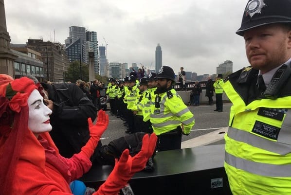 According to XR several thousand climate change protesters blocked Trafalgar Square, Lambeth and Westminster bridges Victoria Embankment, Whitehall and the Mall bringing the area to a halt.