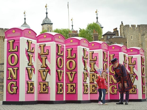 If you head down to the Tower of London today you’d be in for a surprise. London’s iconic red telephone box has turned pink!