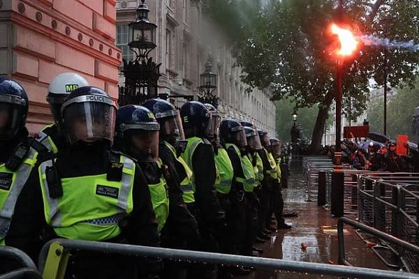 The Metropolitan Police said in a statement, “A large number of people joined demonstrations that were largely peaceful and left central London after the event.