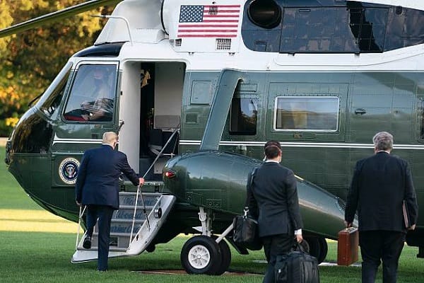 US President Donald Trump was taken to a military hospital overnight by his helicopter Marine One after testing positive for coronavirus.