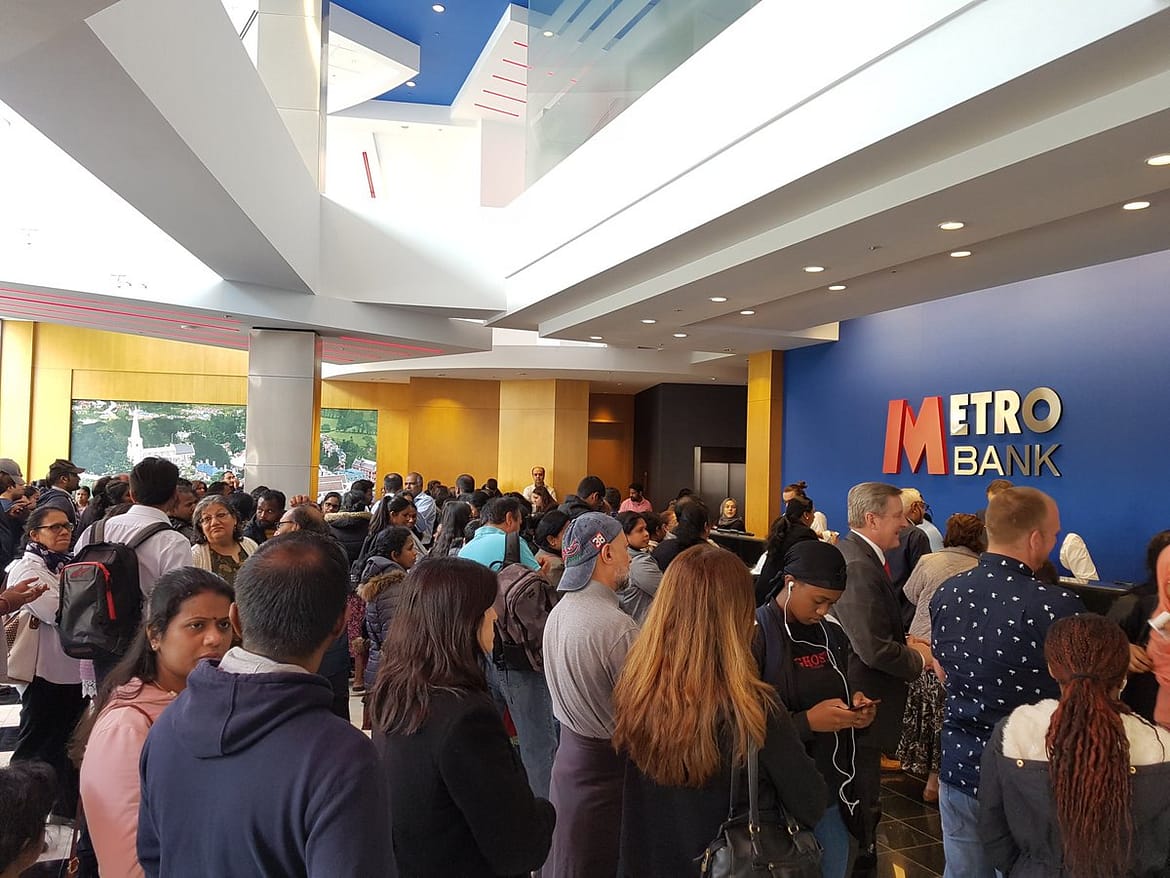 Dylan Shah said on Twitter, “Long qs in the Metro Bank today to take out their money.
