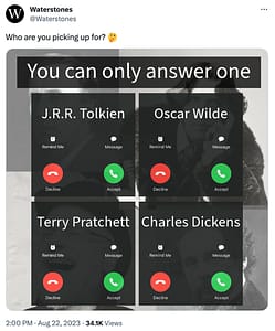 As we can see from the above example from book retailer Waterstones, an image and a question asking followers to share their thoughts or preferences can generate strong levels of engagement that can help to foster more brand loyalty and a vibrant community surrounding a business.