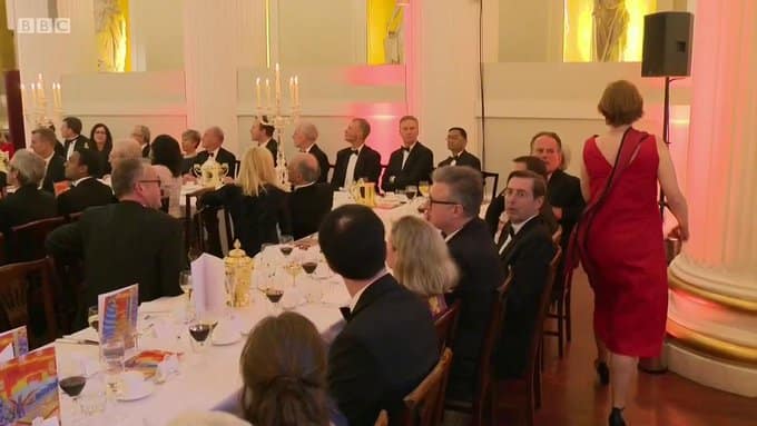 Dawn Butler Labour MP wrote on Twitter, “This is horrific. Conservative Foreign Office Minister Mark Field violently grabs a woman as she protests about climate change at the bankers’ banquet.
