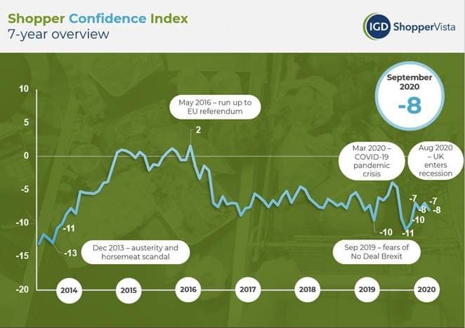 Simon Wainwright, Director of Global Insight at IGD said, “Shopper confidence is likely to remain fragile as the Job Retention Scheme comes to an end to be replaced by the Job Support Scheme, alongside shoppers contending with further uncertainties concerning COVID-19 and whether there is a deal or no-deal with the EU. This will no doubt lead to an increase in savvy shopping tactics over the coming months.