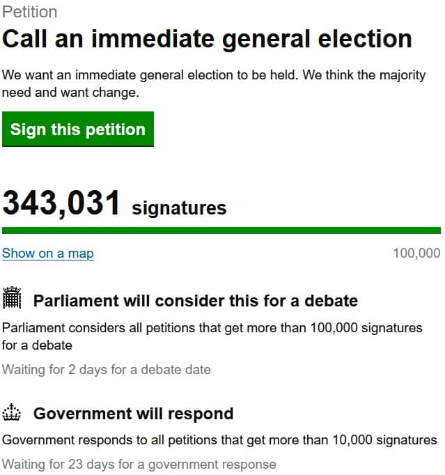 Sir Keir Starmer is faced with yet another hammer blow as more than 340,000 people have signed a petition demanding a general election within a month.