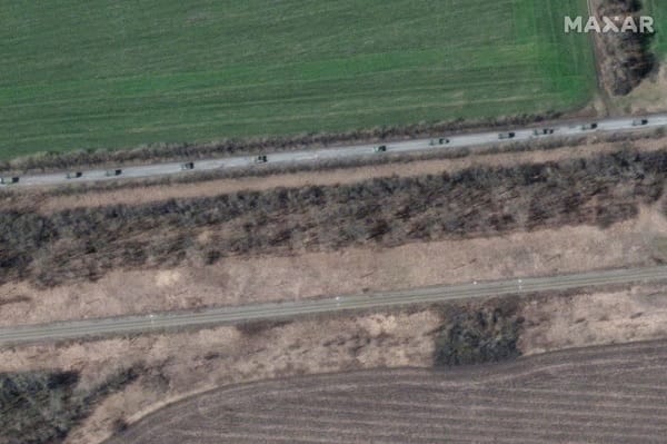 Satellite imagery firm Maxar Technologies shared images which shows a convoy moving through the town of Velykyi Burluk, near Kharkiv.