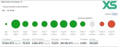 From the above chart, we can observe that BTC is currently in the support zone of $41,417 to $43,345, where 2.93 million addresses hold 991,100 BTC, according to Into theBlock data. Therefore, the next target in the upward direction would be the $43,345 level.