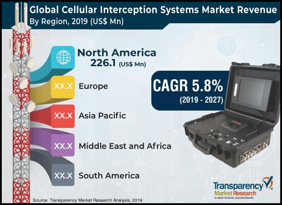 The market of mobile interception is estimated at $1.8 billion globally, and $ 226.1 million in the U.S. alone. The market is estimated to grow at a tremendous rate of 5.8% annually for the next decade.