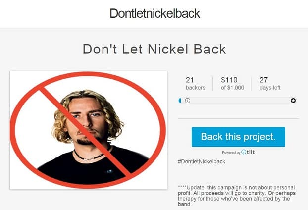 “Unlistenable music” has just made someone start a crowdfunding campaign titled “Don’tletNickelback” – talk about hating things with a passion.