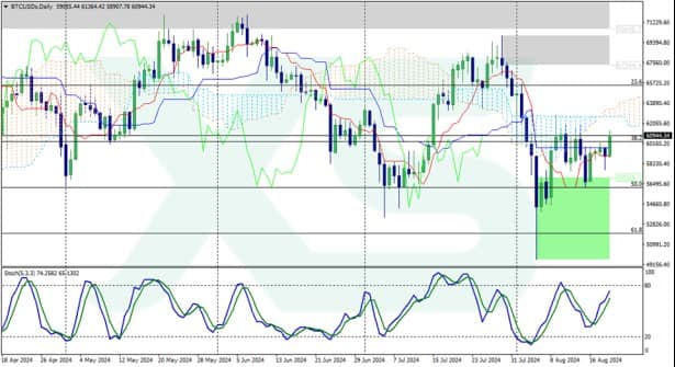 If we assume that Bitcoin’s price rises again to the 61.8% Fibonacci retracement level at $62,066, it might encounter some resistance at this level, as it aligns with a previously broken trendline and the 100-day exponential moving average around $62,226, making it a key resistance zone. Breaking through this level would be considered the start of a strong upward trend.