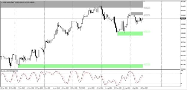 However, in case the price reverses and fails to break above the mentioned resistance, it will target support levels at $4,369. This would signify a continuation of the sideways range-bound trend that the index has been in recently.