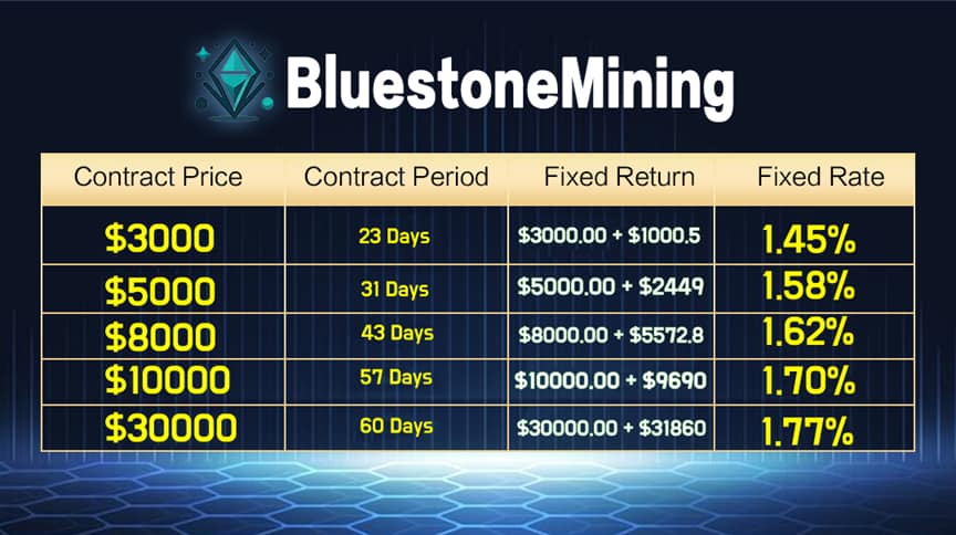 BluestoneMining is a popular and powerful cryptocurrency mining platform and an excellent resource for earning passive cryptocurrency income. The platform is one of the world’s leading mining companies and your trusted partner. To take it to the next level, BluestoneMining has launched a free Bitcoin mining plan that allows you to passively earn Bitcoins. They promise to open Bitcoin mining to everyone, regardless of technical knowledge or financial resources, with no strings attached. Once you have mined 100USDT worth of cryptocurrency, you can transfer it to your account and trade it. Any profits you make are yours and you can withdraw them to your personal wallet.