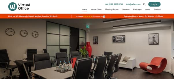 - Virtual office that comes with a prestigious business address, telephone answering, a virtual receptionist, and access to a global business network from £99 per month.