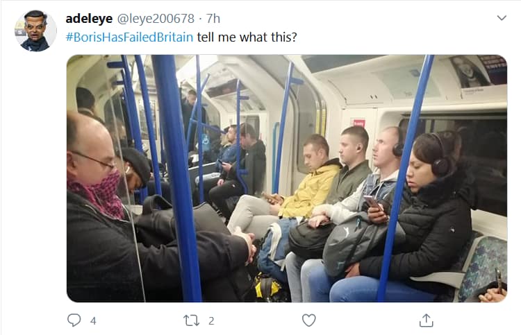 A commuter took to Twitter and said, “Oh my word. Train is packed with construction workers and NOBODY is wearing a mask and NO social distancing as if theres no danger.”