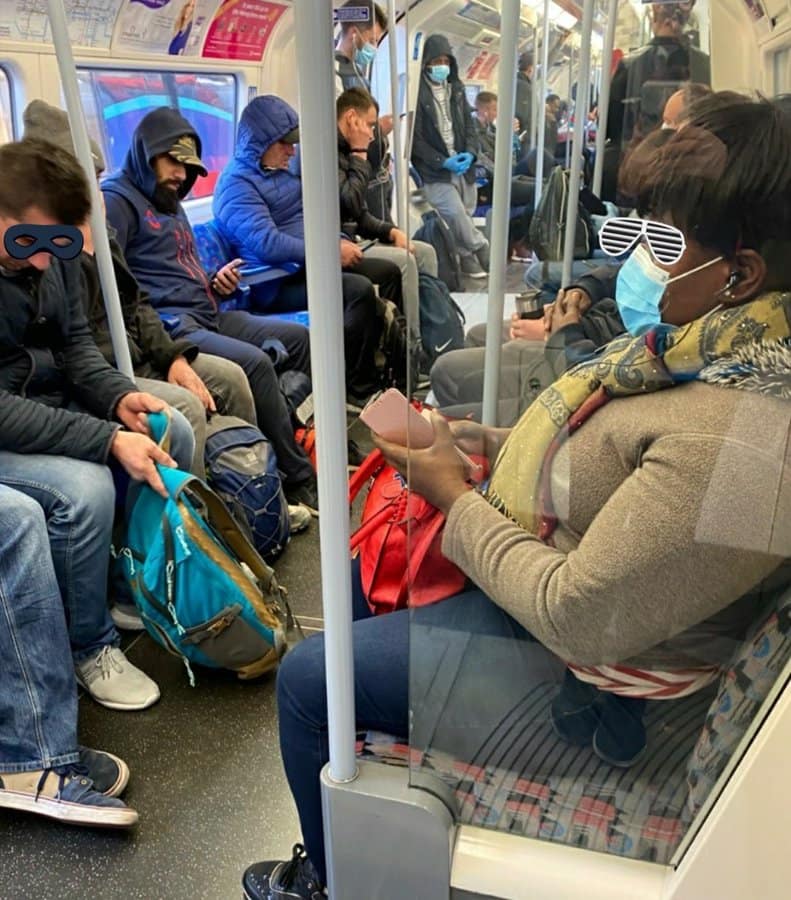 There are many disturbing photos showing people sitting next to each other on packed Tube trains, and very few are wearing face masks.