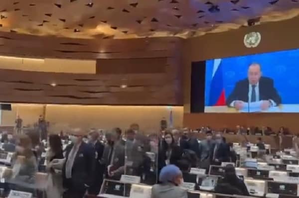 Powerful scenes at UN Human Rights Council this morning as delegations, including 🇬🇧 UK, marched out as Sergei Lavrov, Russian foreign minister, delivers his address.