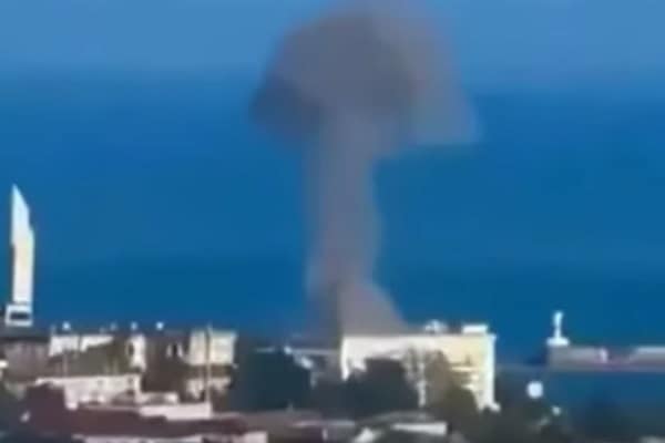 The Russian Navy’s headquarters for the Black Sea fleet was bombed and smoke was seen billowing in the air following a direct hit.