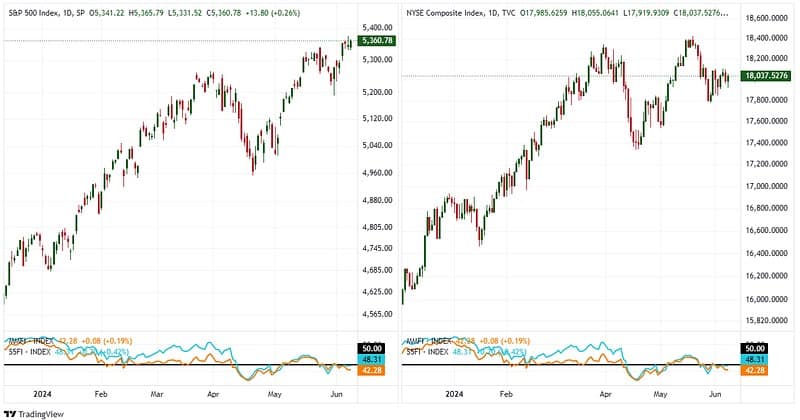 This divergence between how the majority of stocks are acting and the major indices signals the potential for choppy trading, or even a pullback in the major indices if the NYSE Composite and Russell 2000 continue to weaken.