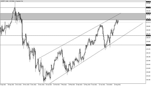Speaking of inflation in the United States, we had seen a series of economic figures indicating the possibility of inflation remaining high for a longer period than expected, which may be followed by the Federal Reserve keeping interest rates at record levels for a longer period than expected, which may continue to pressure to raise bond yields and the Japanese yen consequently to fall. This week, all eyes will be on Jerome Powell’s speech at the Jackson Hall symposium on inflation, interest rates, and growth.
