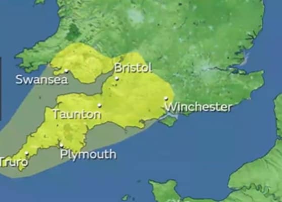 Heavy rain across parts of South Wales and southwest England